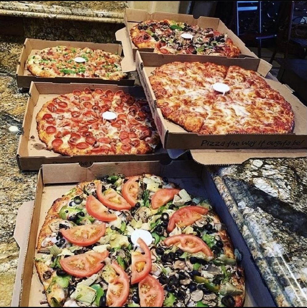 Our fresh pizza dough covered in butter, brown sugar, cinnamon and topped with a dusting of mozzarella and powdered sugar. - (230 cal./slice)